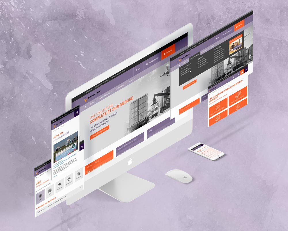 A la suite d'ateliers d'idéation, il m'a été demandé de concevoir les parcours clients sur le nouveau site Carcept-prev.fr et de les décliner en versions « responsives ». La cinquantaine d'écrans réalisée à cette occasion a ensuite été challengée par les membres de l'atelier avant d'entrer en phase de développement.