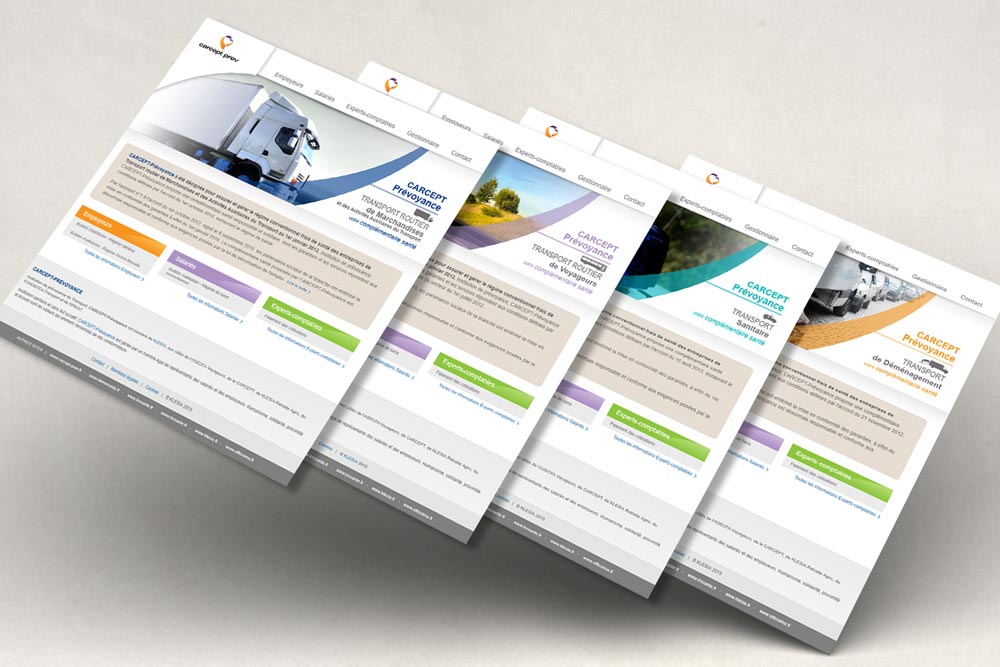 Pour présenter les produits de couverture Santé des principales branches de transports de Carcept Prévoyance, des mini-sites avaient été mis en place. Légers et fonctionnels, ils répondaient à un besoin de mise à disposition rapide de documents pratiques pour les assurés.