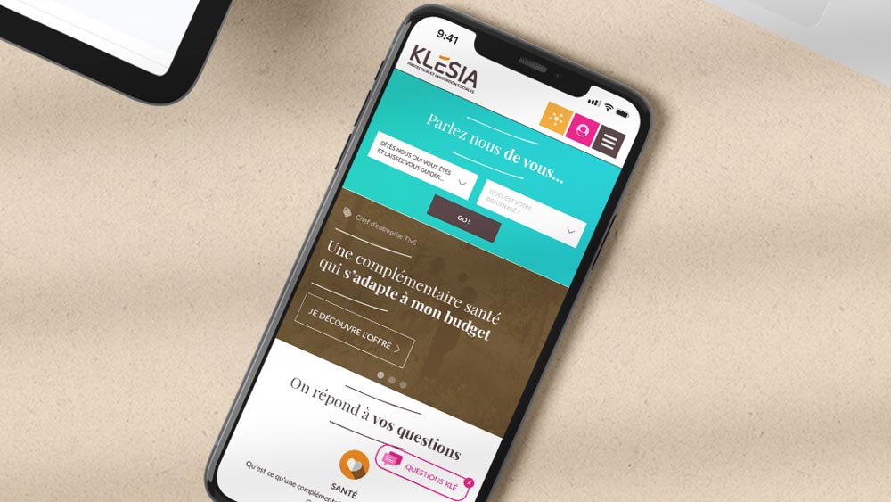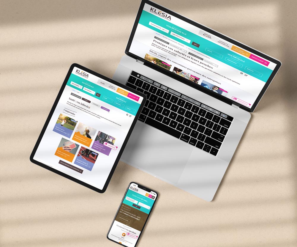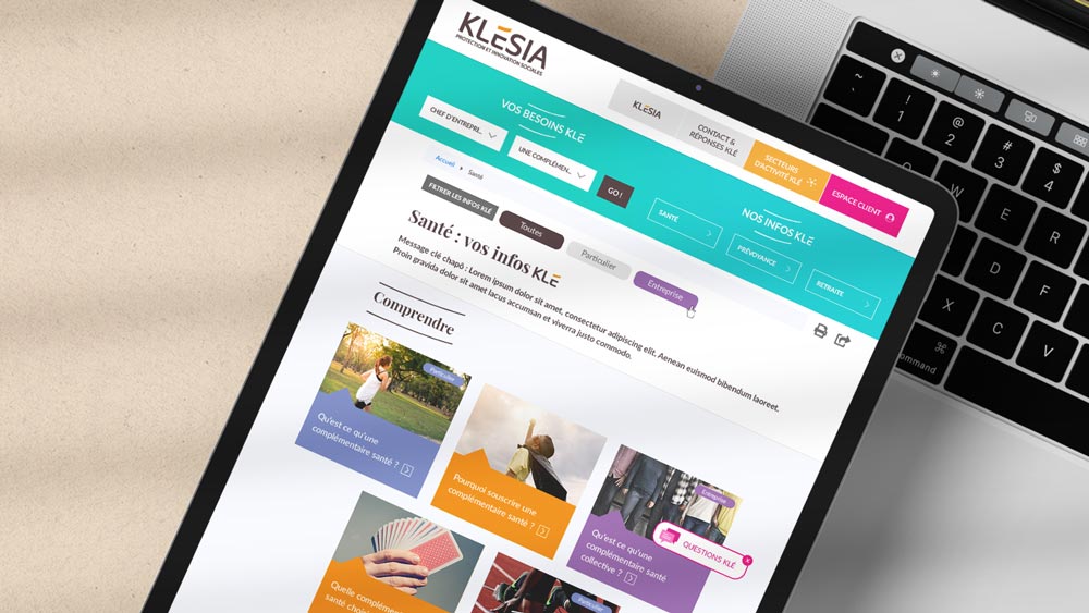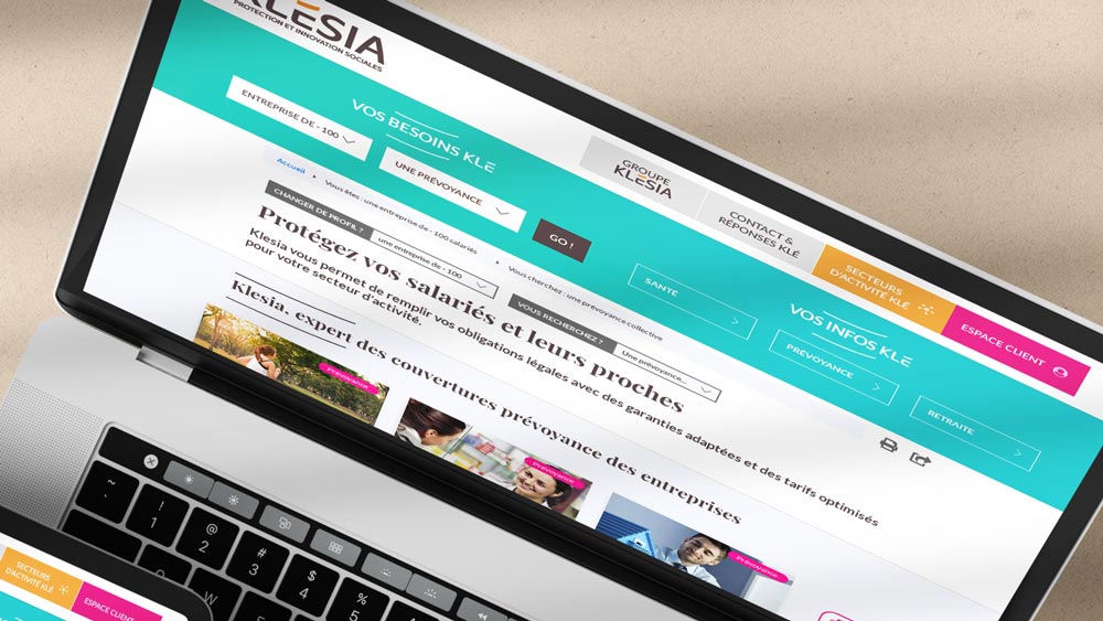 Création du Web design et déclinaisons de 25 écrans desktop / tablette et mobile pour l'agence Archriss qui a développé le site de Klesia en place depuis 2018.